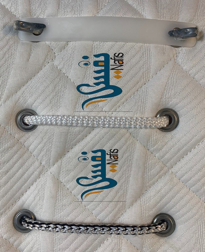 دستگیره قیطانی تشک در دو طرح سفید و سفید مشکی کنار تشک طبی فنری برای زیبایی با دستگاه مونتاژ دستگیره نصب می شود